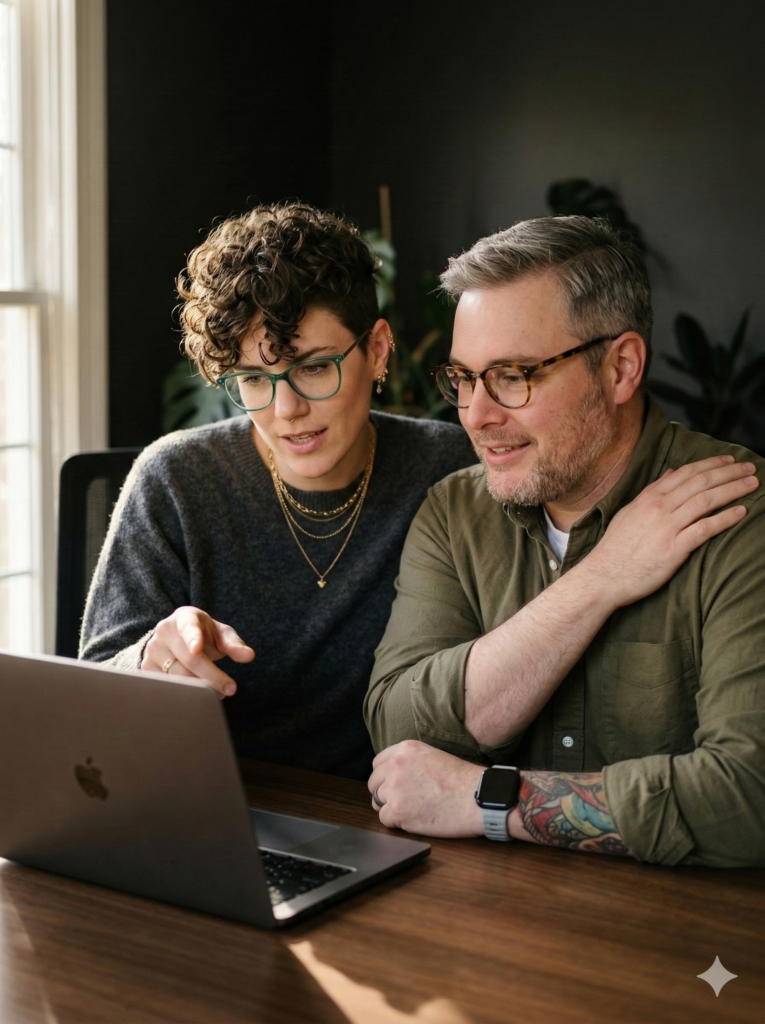 Joy helped him with everything along the way. She finally realized that the thing she’d been resisting was the thing she actually wanted: building websites from home, on her own terms, with her husband. So she stopped fighting it.